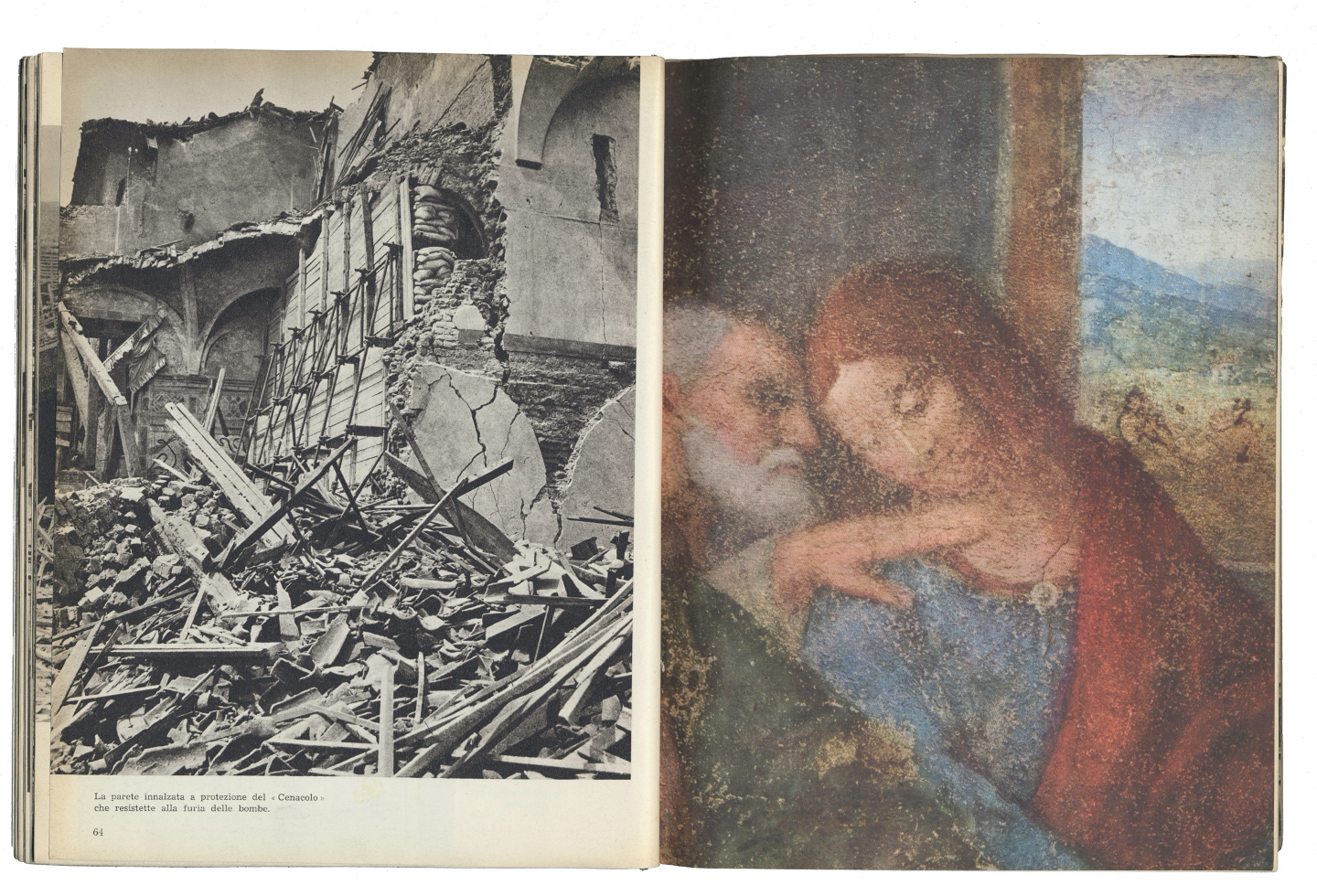 The protective wall of Leonardo Da Vinci's Last Supper erected during the bombing of World War II. In Ronza, Robi. 2002. Milan 1940-1955. Bombed and rebuilt. Milan: Comune di Milano, 64-65.
