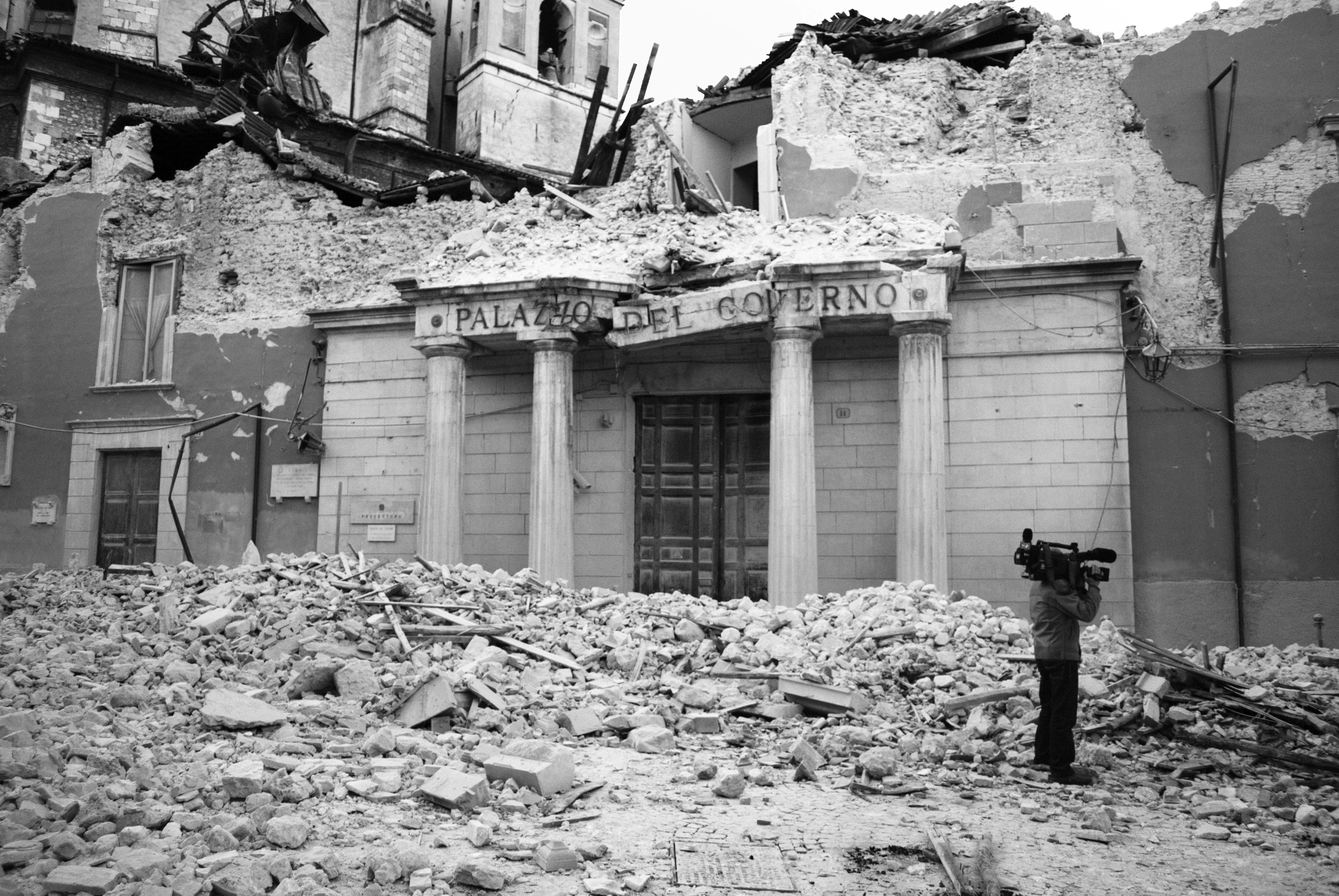 Emiliano Dante, “6 Aprile 2006, prefettura, poco dopo l'alba”. In Dante, Emiliano, Laurenzi, Massimiliano, Nanni, Valentina. 2009. Terremoto zeronove. Diari da un sisma. Also in the documentaries “Into the blue”, 2010, and “Appennino”, 2017. ©Emiliano Dante
