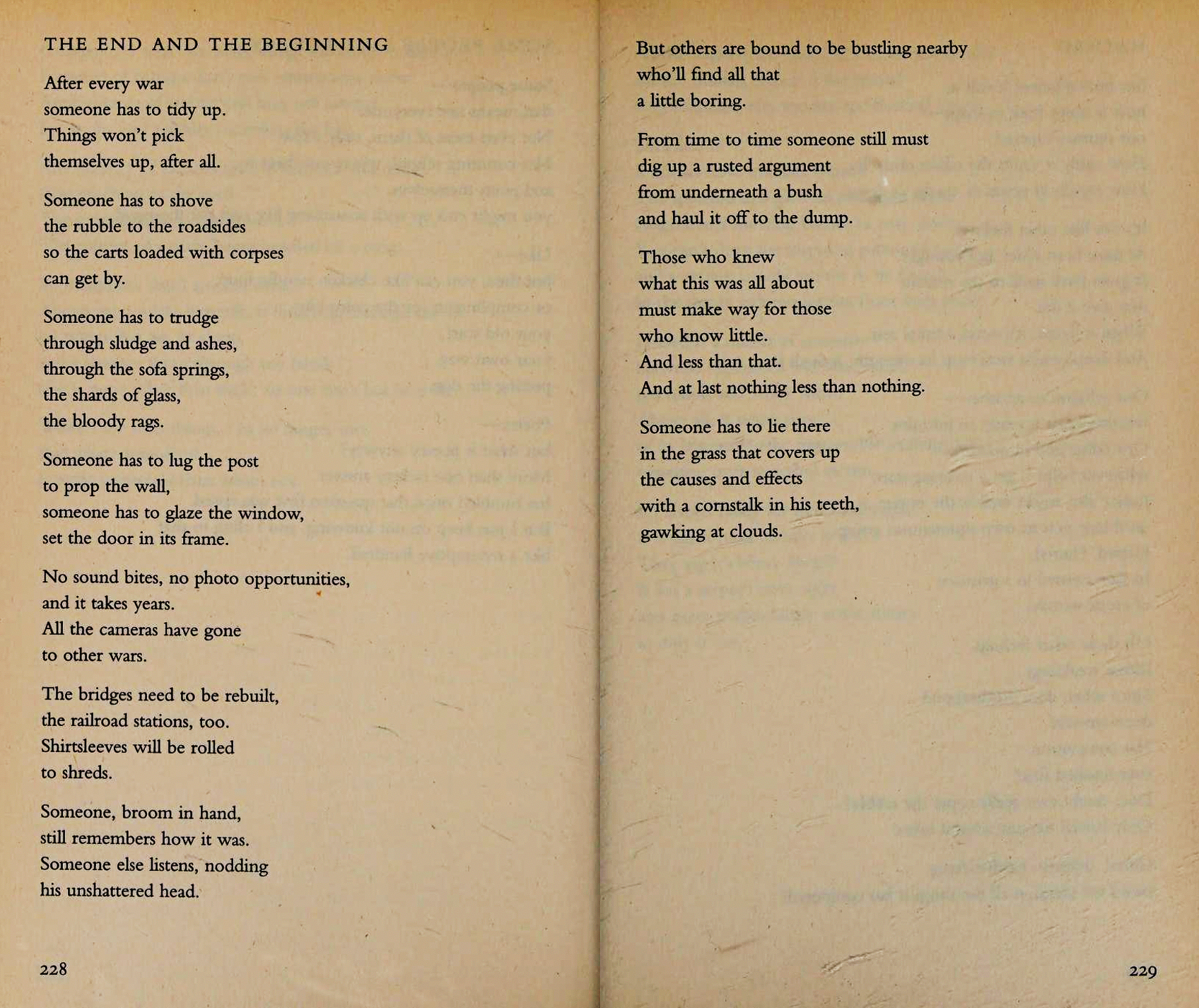 Wisława Szymborska, 1998. Poems new and collected 1957-1997. San Diego: Harvest Book Harcourt, 228-229.